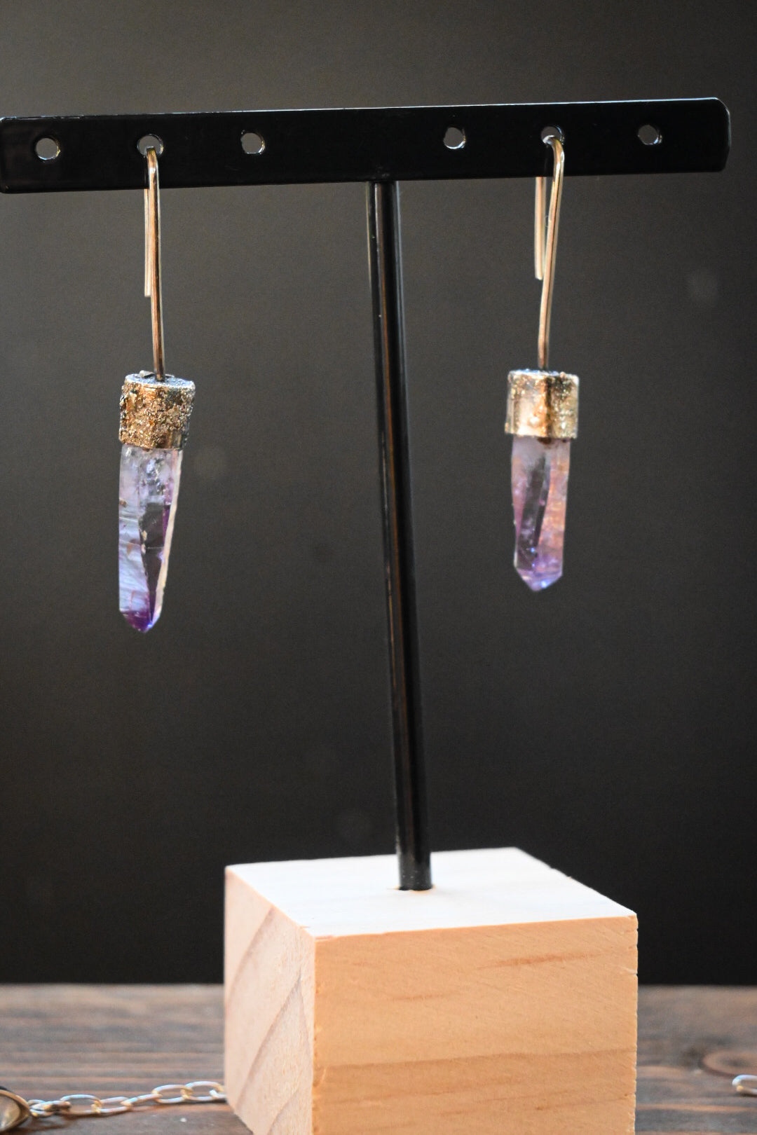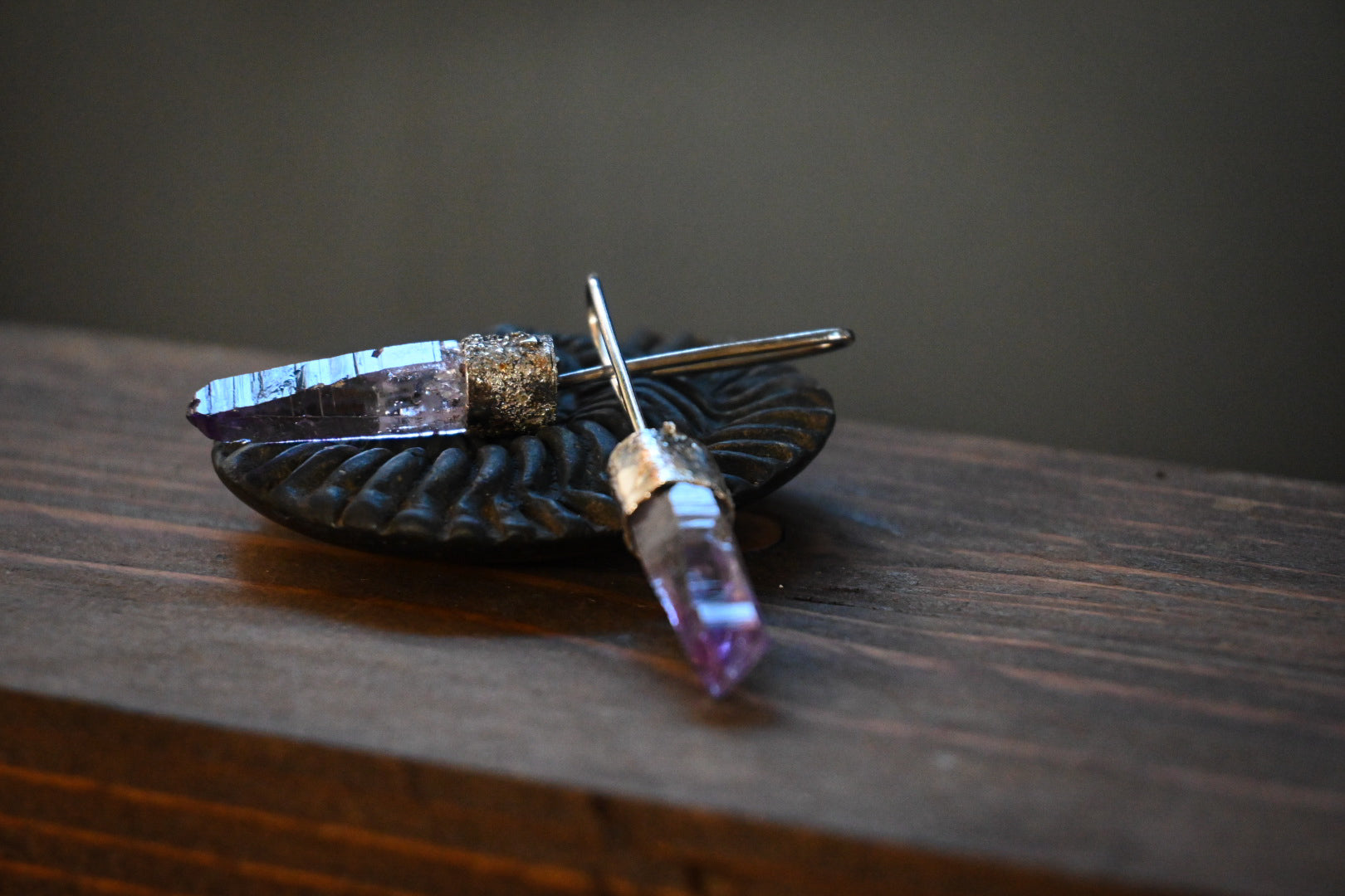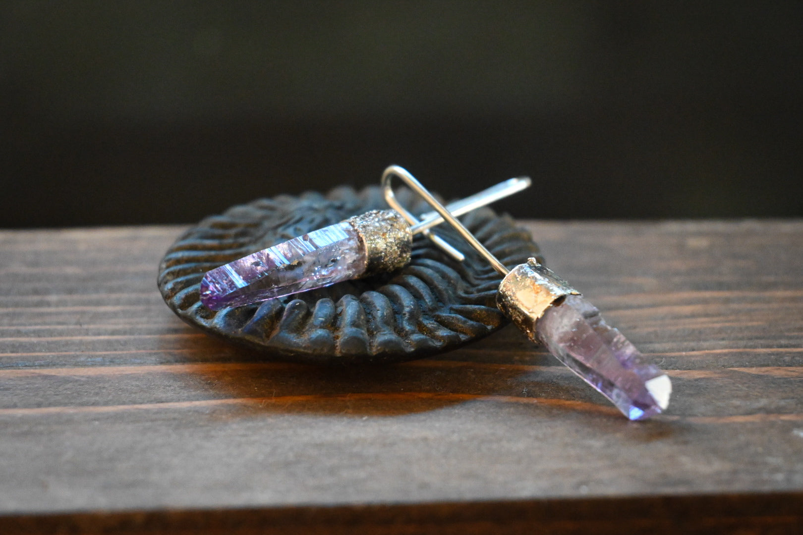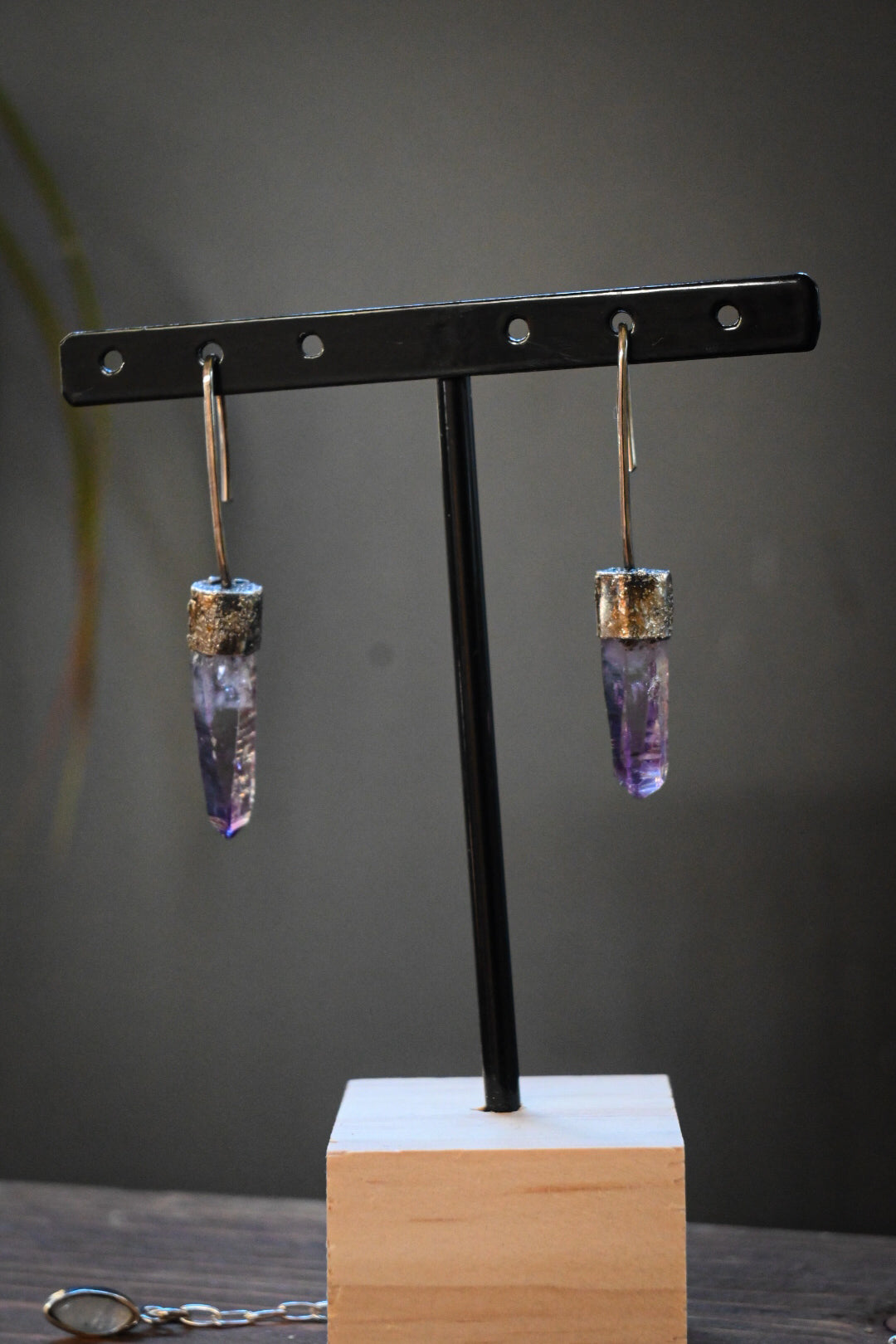 Pendientes artesanales en plata, con puntas naturales de amatista mexicana, conocidas por su color violeta profundo y magnético.