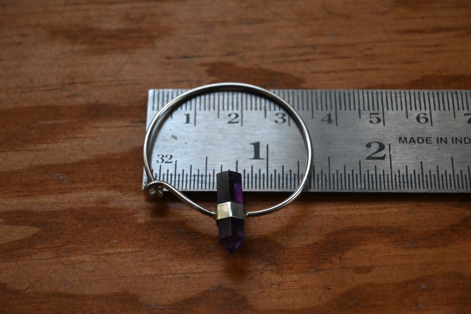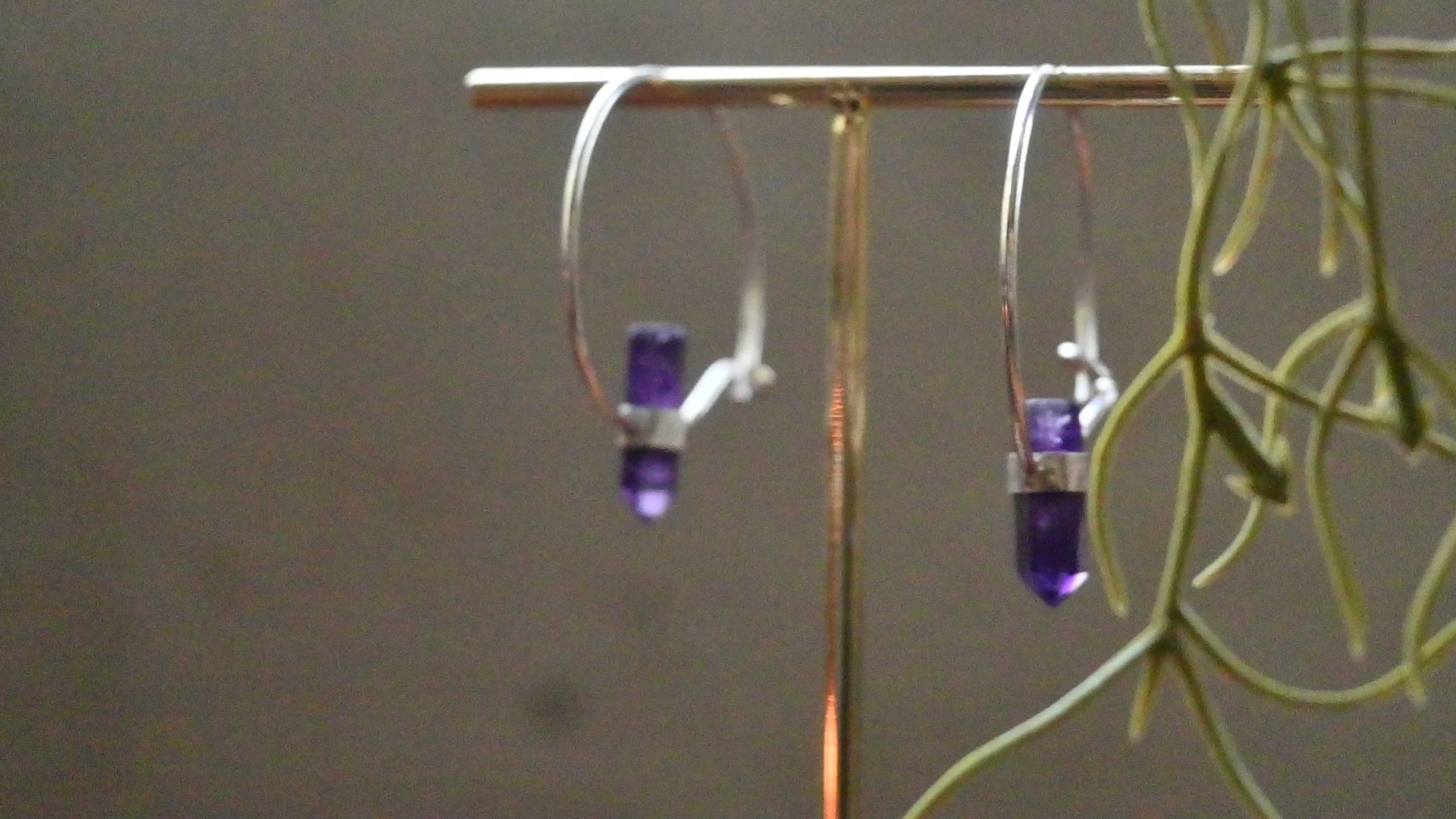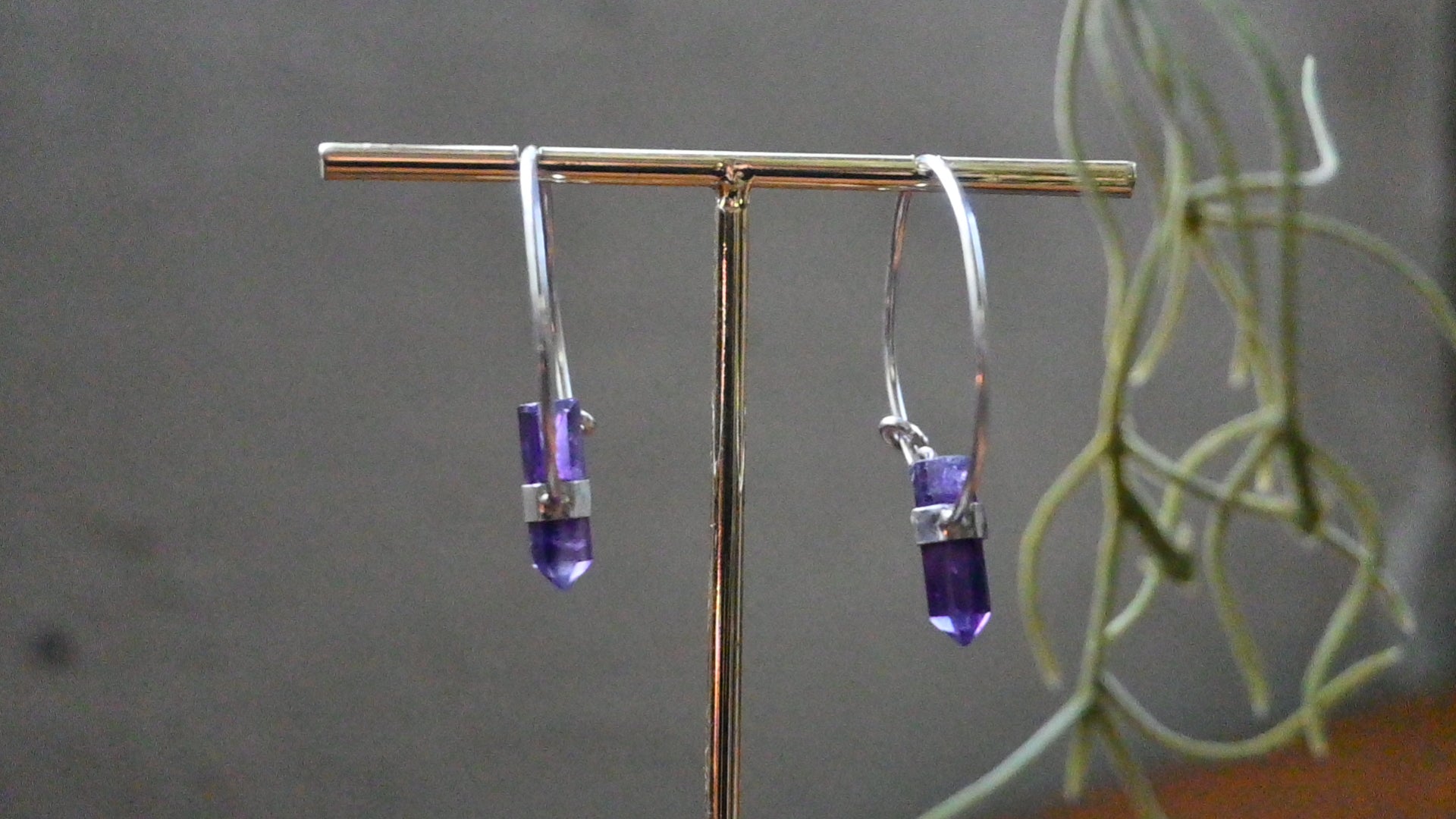 Sutiles, ligeros y llenos de energía, estos pendientes en forma de aro están forjados a mano en plata de ley y decorados con puntas naturales de amatista.